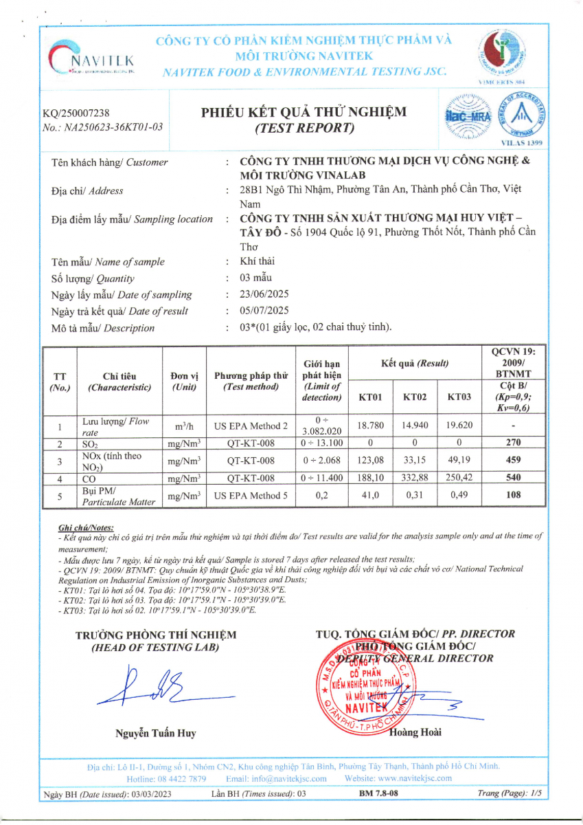 Chúng tôi tự hào thông báo rằng Huy Việt Tây Đô đã chính thức đạt chứng nhận quan trắc môi trường, minh chứng cho nỗ lực không ngừng trong việc bảo vệ môi trường và phát triển bền vững.